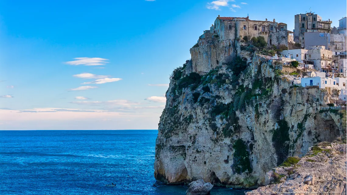 Il Castello di Peschici e la falesia calcarea sul litorale adriatico del Gargano
